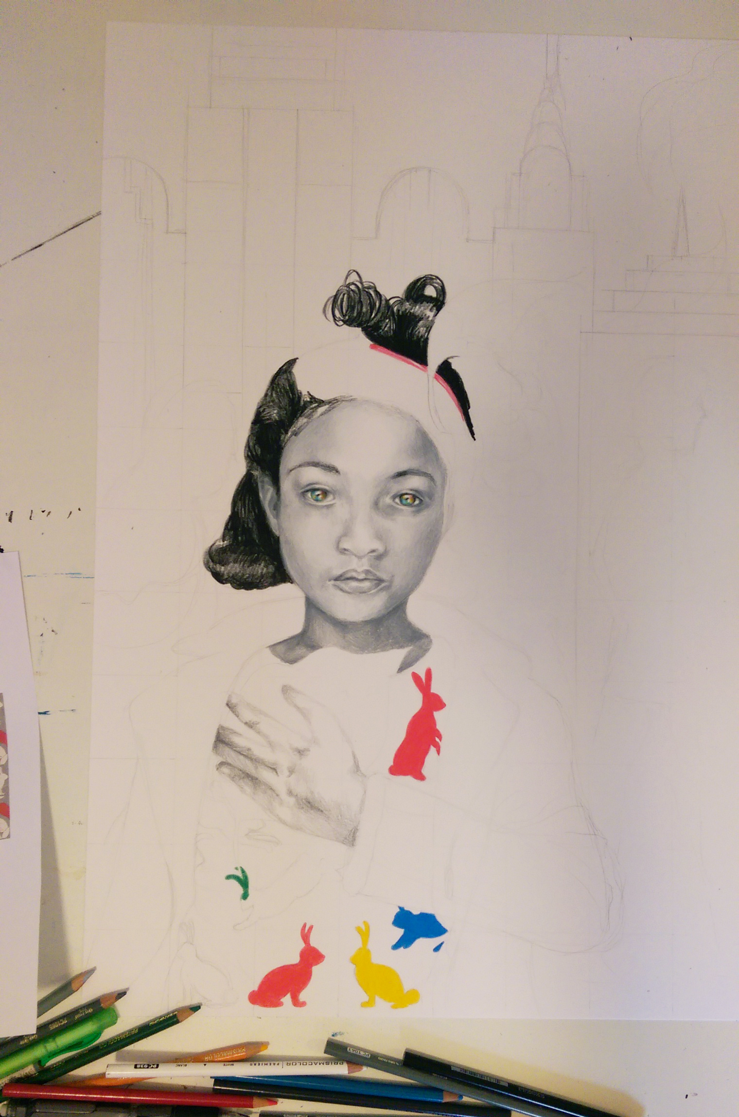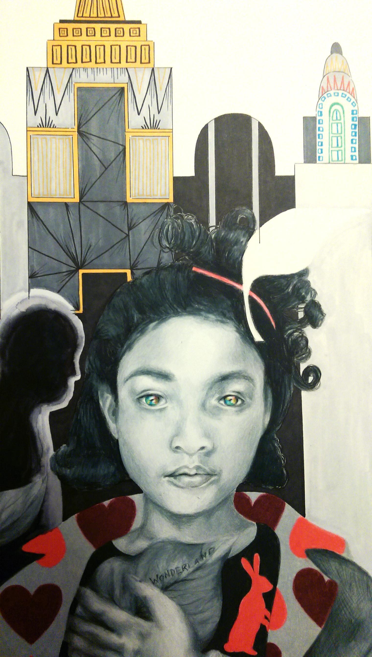Our special highlighted projects made a splash as well. We had a 3’x4′ canvas composed of 80 squares in which each student filled in a square or 2 with the media and subject matter of their choosing to create an expressive patchwork. If you like what you see, it’s available in print form in Artshop’s Redbubble Shop.