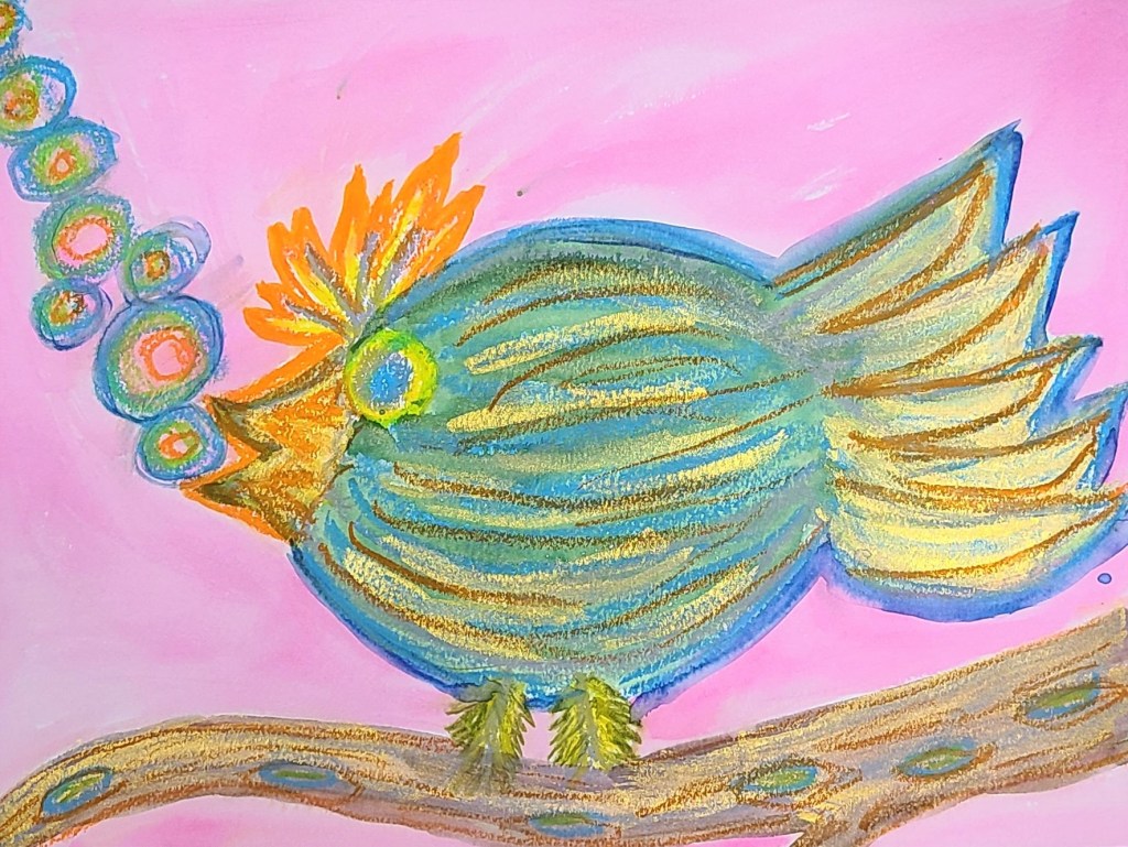 It’s been awhile since I’ve done a series … since Unlimited from way back in 2017 to be exact. This new one is going to be on 22×28″ canvases and will be completely multimedia. I love mixed media because it allows the artist to use the best tool for each component of their composition. I draw people better than I paint them still at this point, so figures will be in colored pencil. Interesting silhouettes or clothing … fabric it is! Skies and birds? Acrylics of course, and why not palette knife paint the birds ;).